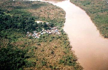 An aerial view of a small village beside Sarawak River near Kuching City. Contributed by: Virtual-Borneo.com |