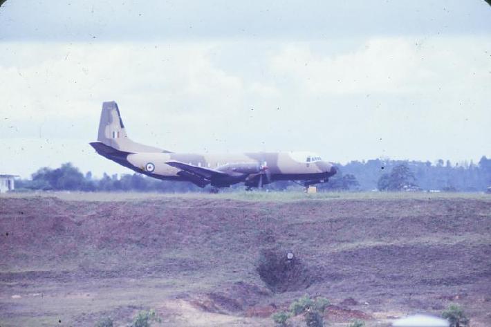 An aircraft of the type that used to re-supply us and act as a general transport. There was a four engined version of an aircraft of this type we know as the C130-Hercules. |