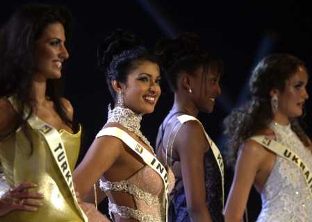 Miss India, Priyanka Chopra, 18, second left, smiles as she is judged for the Miss World contest with Miss Turkey Yuksel Ak ,20, left, Miss Kenya Yolanda Masinde ,21, 2nd right, and Miss Ukraine Olena Shcherban, 17 at London's Millennium Dome Thursday Nov. 30, 2000. Piryanka went on to become Miss World. (AP Photo/Adam Butler) PHOTO: 1 2 3 4 5 6 7 8 9 10 11 12 |